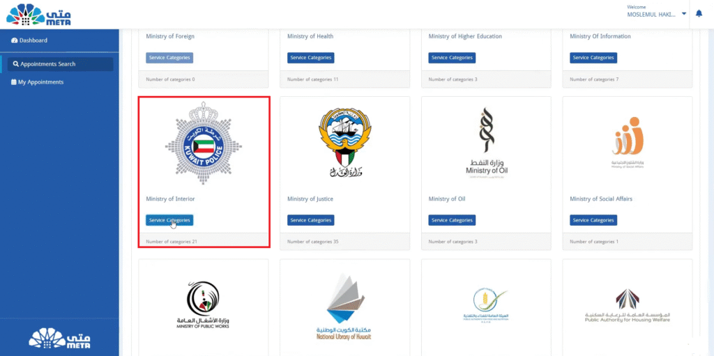- Select Ministry of Interior: Choose “Ministry of Interior” from the list of available services.